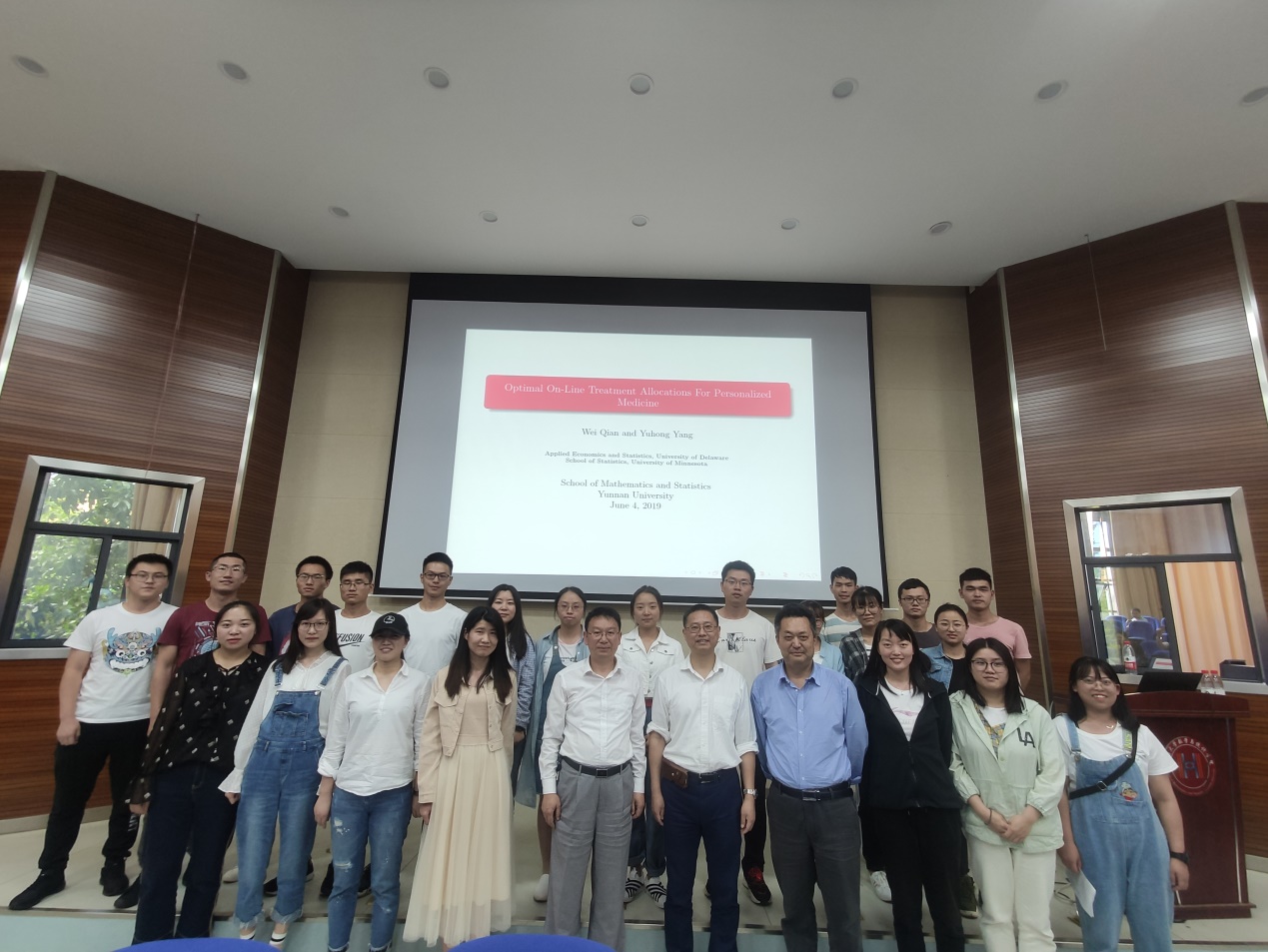 2019年6月4日下午,应我院李建平教授邀请,美国明尼苏达大学杨宇红教授到我院讲学,在威廉williamhill官网3103报告厅作了题为《Optimalon-line treatment allocations for personalized medicine》的学术报告。本次学术报告由学院院长唐年胜教授主持,副院长李建平教授、丁红林博士及博士硕士研究生参加了报告会。