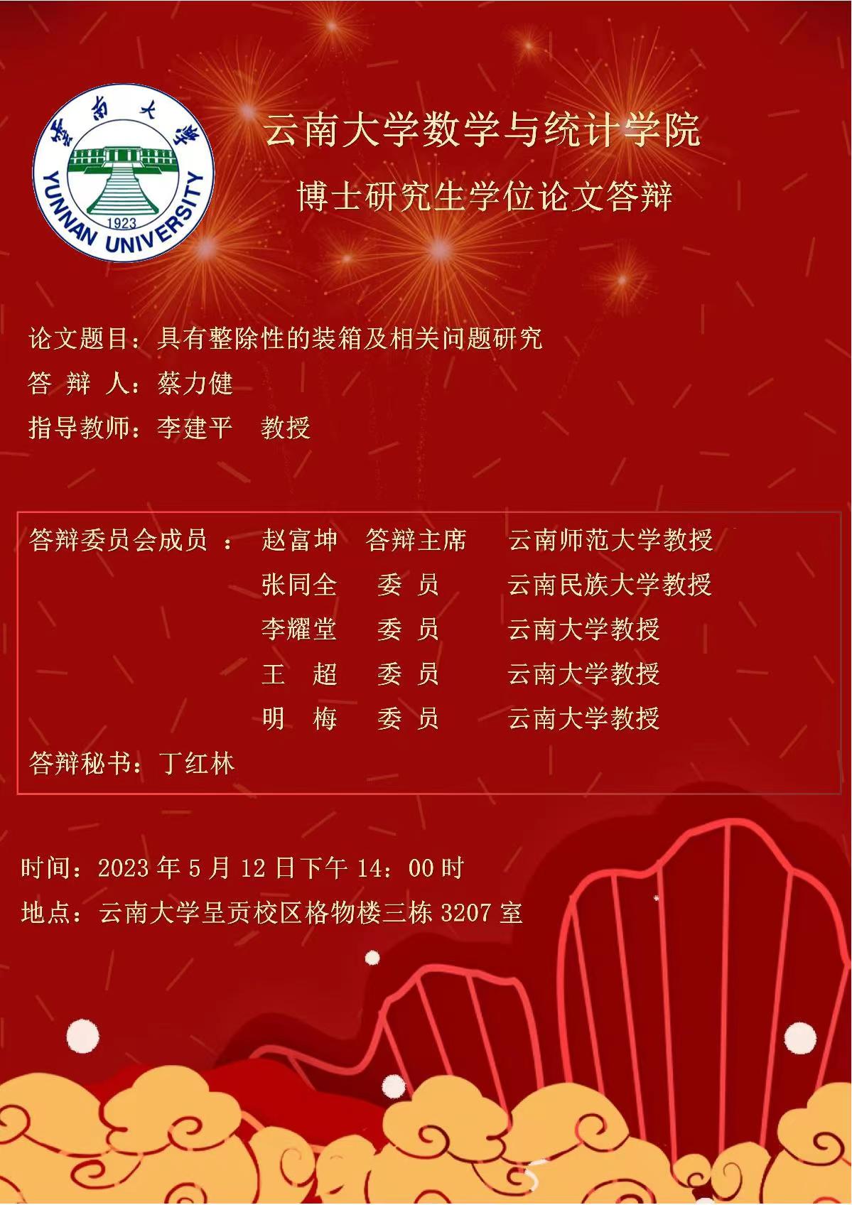 威廉williamhill官网 博士研究生学位论文答辩:具有整除性的装箱及相关问题研究,答辩人:蔡力健