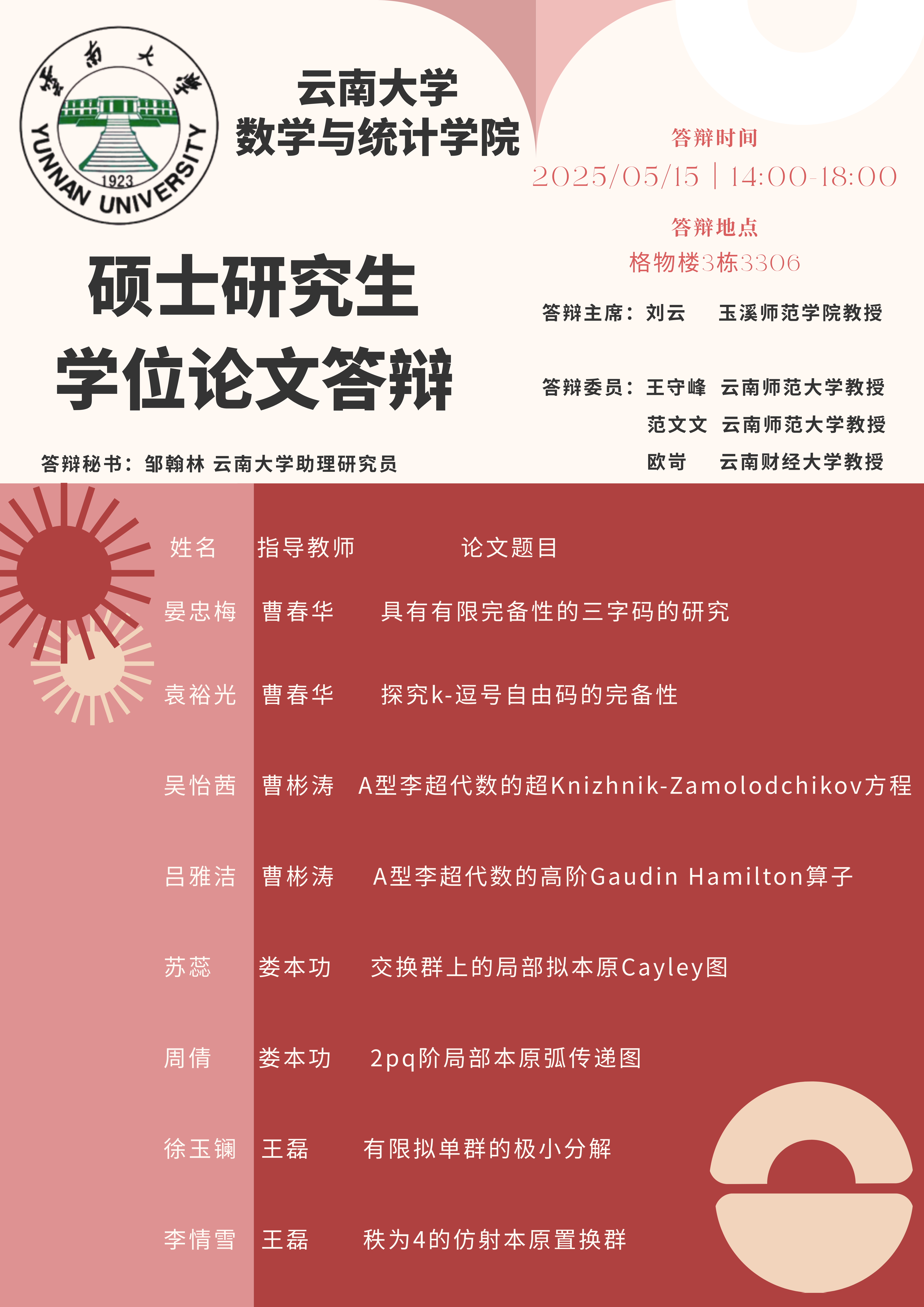 下一篇:威廉williamhill官网2025届计算数学、运筹学与控制论专业硕士学位论文答辩2组公示(答辩人:曹亮民、王道艳、赵赟等)