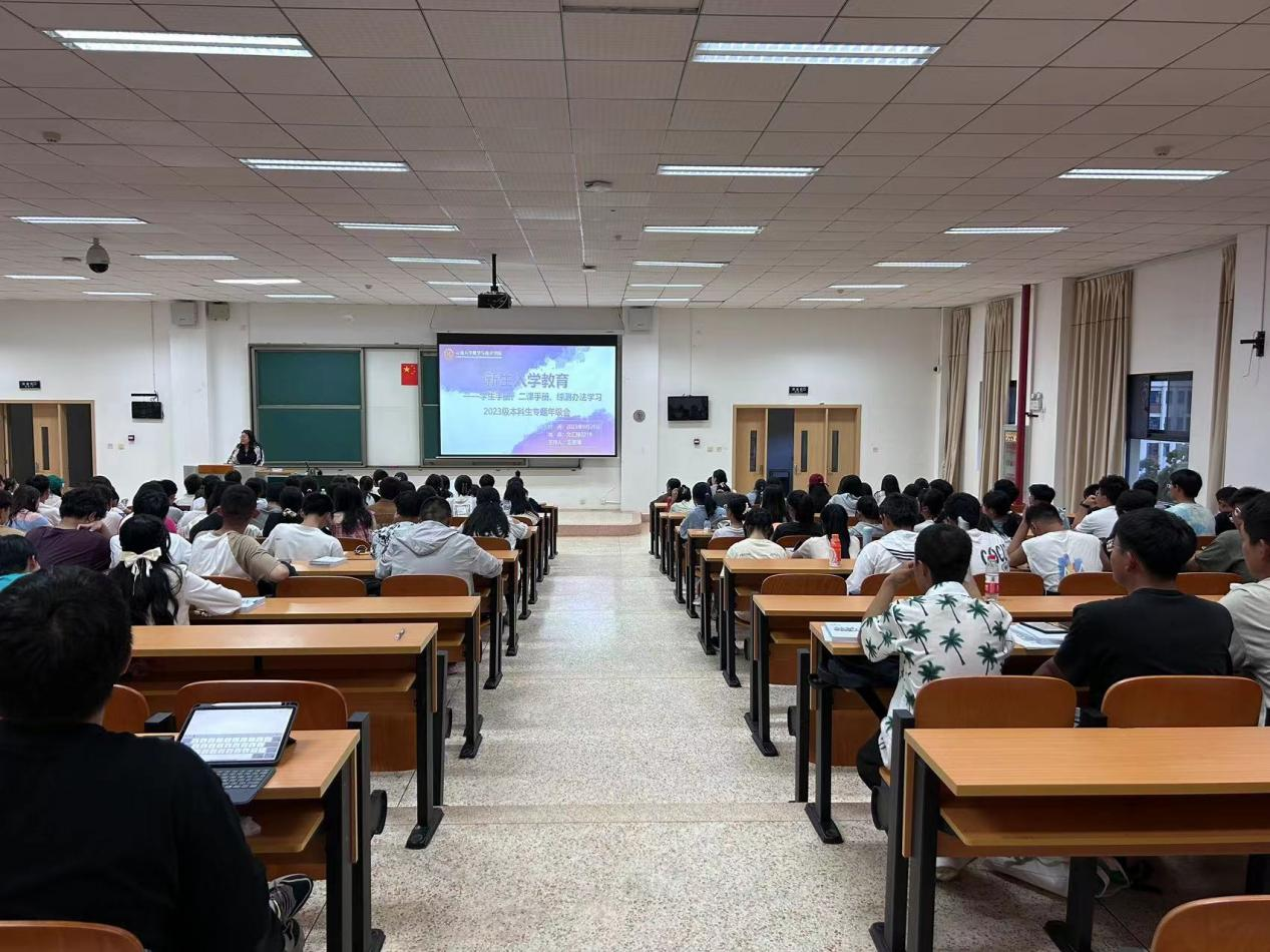 为引导新生尽快熟悉学校规校纪,规范新生在校行为,强化遵纪守法意识,营造良好校园氛围。2023年9月20日晚上,我院于文汇楼2418开展新生入学教育之校规校纪专题讲座,本次讲座由辅导员王蔓琦主讲,2023级全体新生参与听讲。