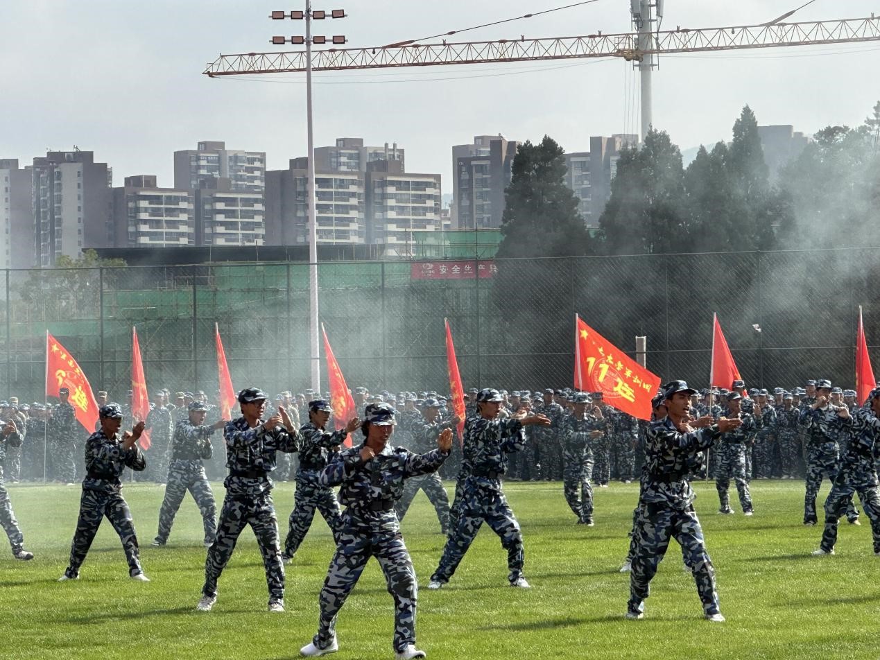 9月16日标志着军训的结束,呈贡和东陆校区于上午进行军训成果汇演。学生们展现了他们朝气蓬勃的精神风貌。英姿飒爽的国旗护卫队率先庄严入场,标志着汇演开始。在安排与指挥下,我们举行了升旗仪式,随后各方队依次进行队列展示、战术、军体拳、刺杀操等军训项目汇报表演。整个军训汇演的过程中,同学们迈着整齐的步伐,喊着嘹亮的口号,每个表演都充满了力量与美感。学子们英姿飒爽、斗志昂扬,他们用实际行动诠释了团结与坚韧,他们的精彩表演赢得了观众的阵阵掌声。