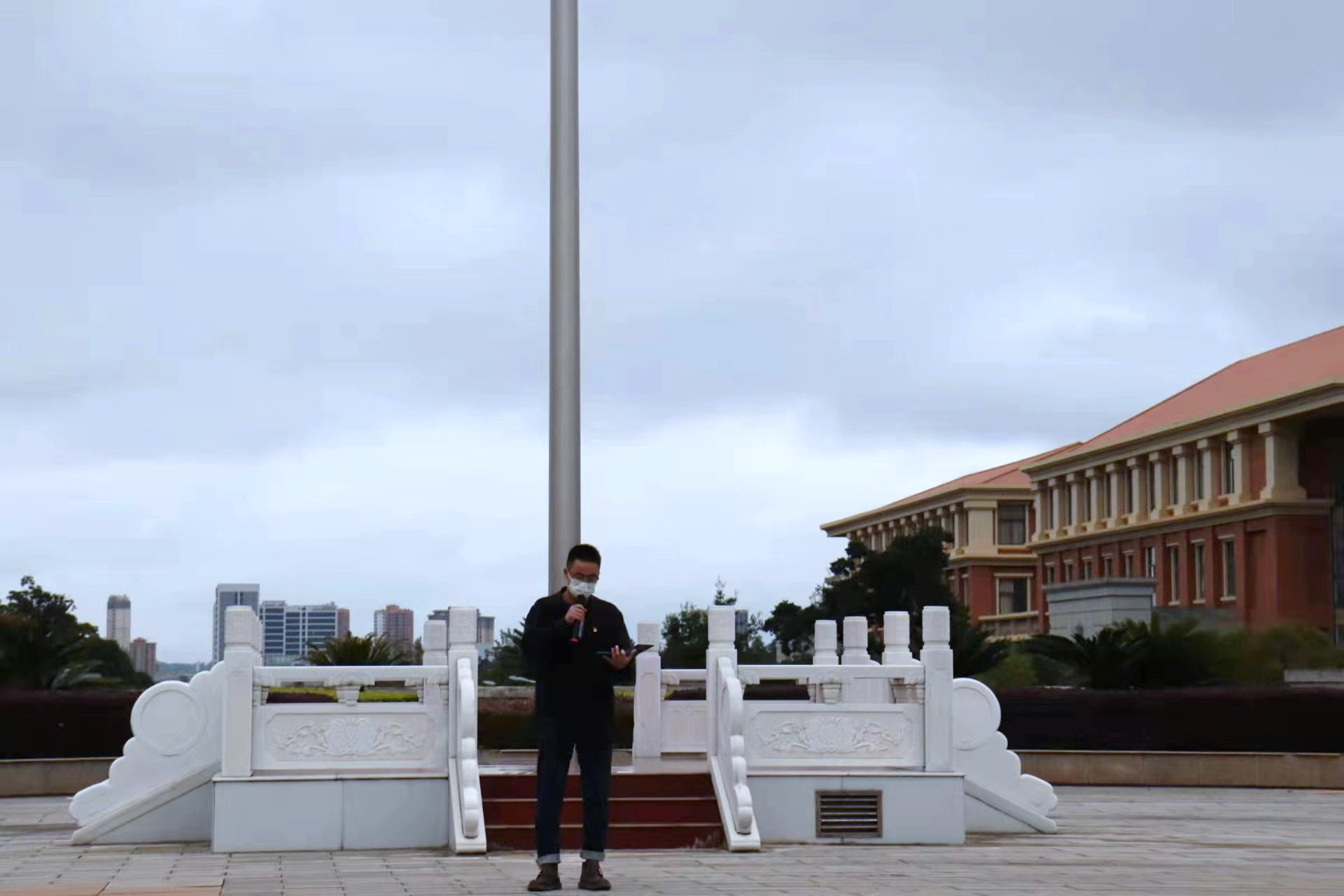 早上七点我院大一、大二、大三年级本科生准时到达文典广场,早上七点半升旗仪式正式开始。伴随着国旗护卫队铿锵有力的步伐,现场庄严而肃静。所有人的目光聚集在那面五星红旗上,眼里满是希望的光辉与对先辈的敬佩。