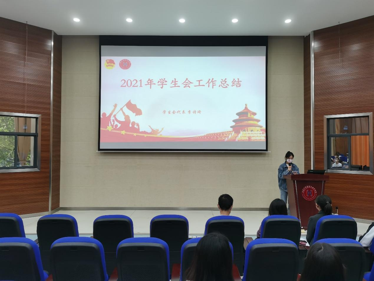 会议在嘹亮的国歌声中拉开帷幕。在过去一年中,我院团委圆满完成了各项工作,取得了优异的成绩。王蔓琦老师首先就我院2021年的团学工作进行总结发言;接着院团委组织代表李佳璇、学生会代表李诗琦、研究生会代表王晓盛、青协自律委联合会代表王雨洁、新闻宣传中心代表陈叶萱同学,对各学生组织2021年学生工作进行总结;五四红旗团支部支书宋佳恒同学,优秀毕业生代表李家欢同学进行发言。