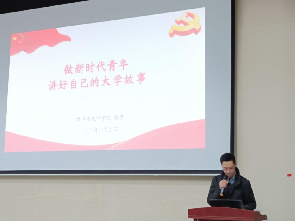就“讲好自己的大学故事”,徐瑾老师结合自身经历,为同学们讲述了要充分认识到数学、统计学科对国家发展的重要性,进入大学后及早做好规划,找寻每一门课程以及每一件小事的意义感,激发学习兴趣,进一步提高学习成效,鼓励同学们不要浪费学习基础学科所打下的良好基础,应当积极报考研究生,之后他和同学们分享了自己对大学期间的爱情、友情、锻炼身体等方面的理解和认识,对同学们提出了在安全问题,特别是心理健康等方面的要求。