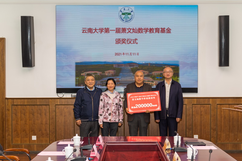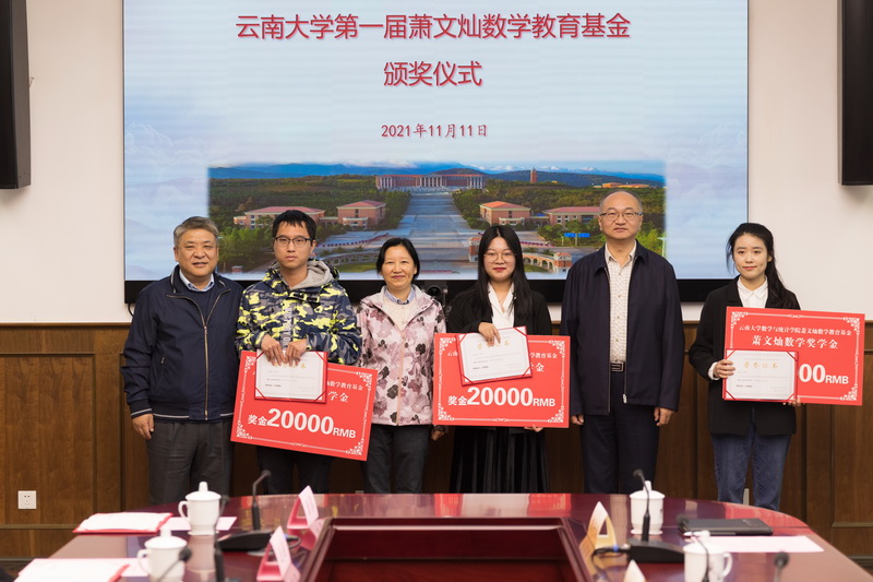 11月11日,云南大学第一届萧文灿数学教育基金颁奖仪式在云南大学呈贡校区举行。云南大学党委副书记李建宇,萧文灿数学基金捐赠人,学校人事处、学工部、校友总会秘书处负责人以及威廉williamhill官网党政领导和师生代表出席颁奖仪式。