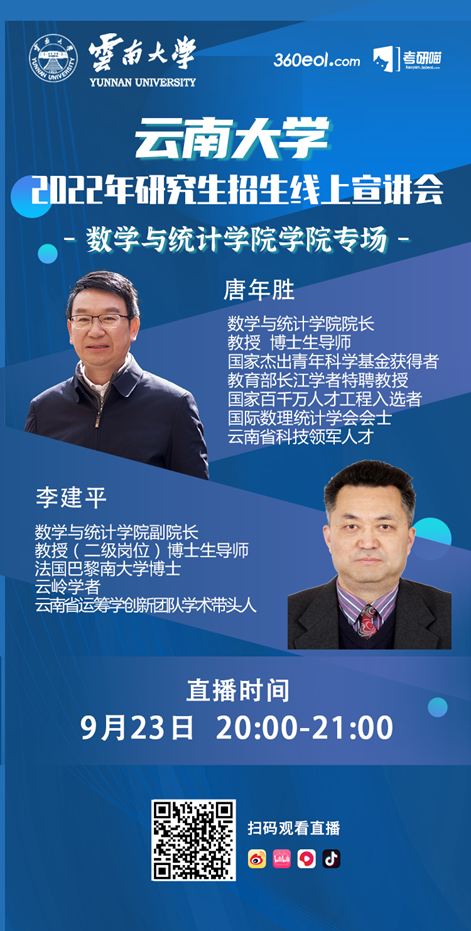 本次宣讲会邀请的是威廉williamhill官网唐年胜院长,以及李建平副院长。将会为大家详细介绍2022年研究生招生相关事宜并解答考生疑问,机会难得,不容错过!
