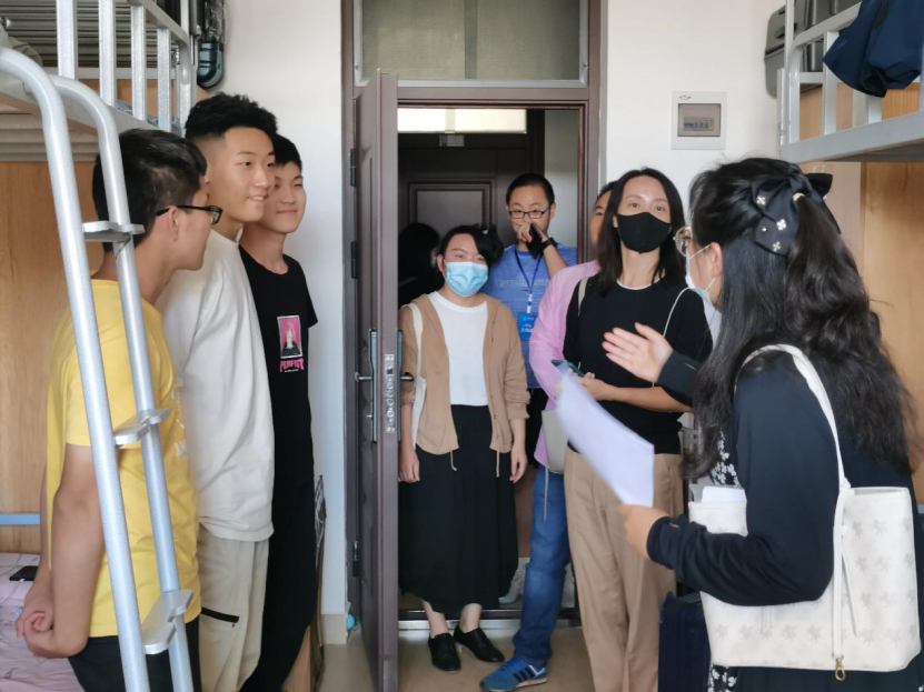 下午3点,威廉williamhill官网副院长潘东东,党委副书记杜芳芳,2021级本科生辅导员王蔓琦,以及2021级班主任余彬、唐琳、王磊、李素华前往学生宿舍看望新生,并对新生进行亲切关怀。在与同学们的交谈中,老师们不断鼓励同学们尽快适应宿舍新环境,学好专业知识。