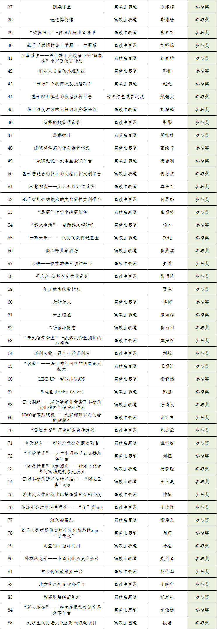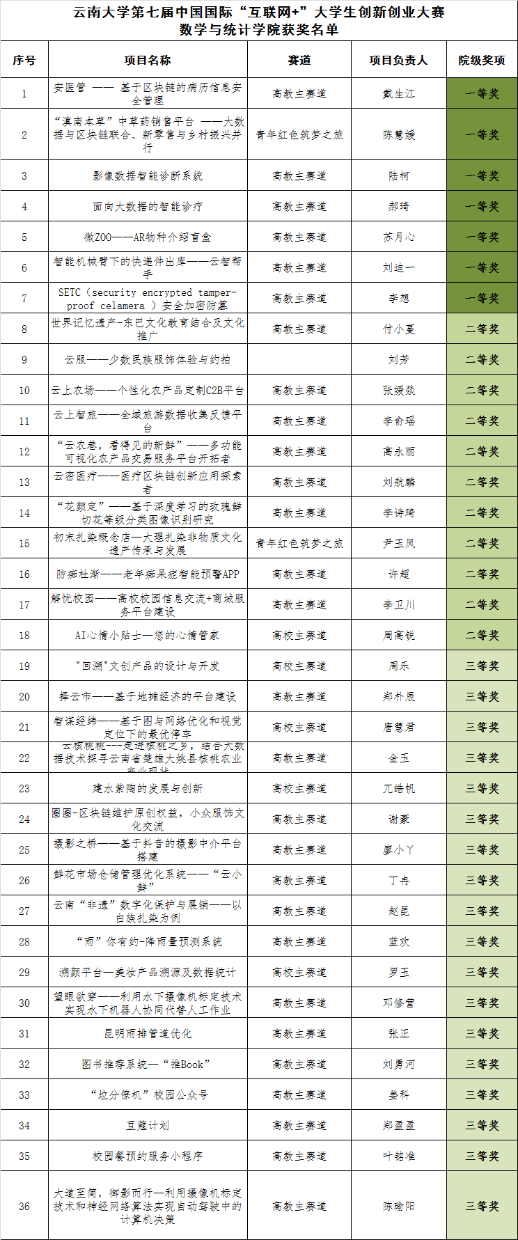 云南大学第七届中国国际“互联网+”大学生创新创业大赛·威廉williamhill官网获奖名单