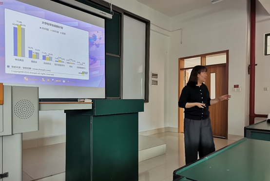 接下来分享经验的是百胜餐饮(云南)人力总监尹艳老师,她首先用数据说明了经历疫情后毕业生在择业中对于企业福利待遇和企业文化制度的重视,以实际例子分享了百胜集团优秀的企业文化和晋升机制,详细介绍了百胜餐饮的薪资待遇和企业福利,并热情邀请我院学生加入百胜集团。