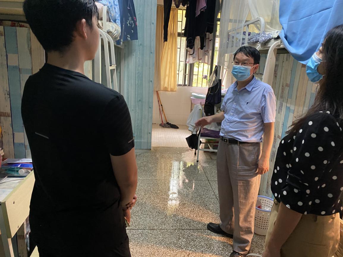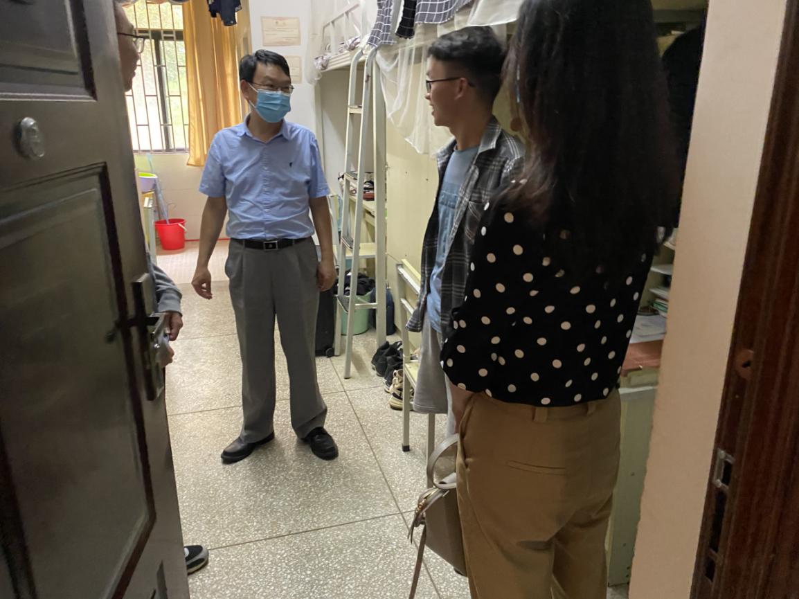 唐年胜院长和杜芳芳副书记在测试完体温做好走访登记后,对宿舍进行了全面的走访,像家长一样事无巨细地叮嘱了同学们一定要保持宿舍通风和清洁,并向同学们致以诚挚的问候。