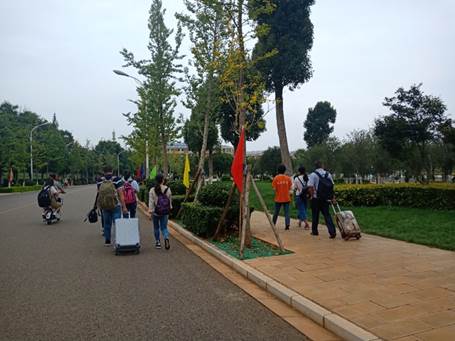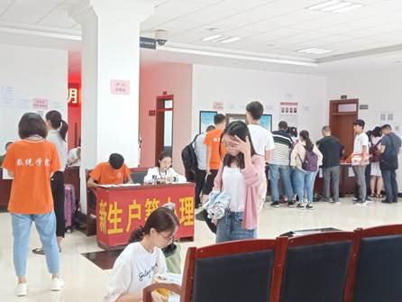 本次迎新工作在学院一楼大厅有条不紊的开展,志愿者们分为四个组,其中三组分别在云南大学南门、西门、车场这三个接待地点将新生带至格物楼三栋一楼大厅接待点,剩下的一组便在格物楼大厅为新生办理注册手续。志愿者们各司其职,在指定地点耐心等候新生的到来,为每一位新生答疑解惑、指引方向,保证每一位新生都能顺利注册。
