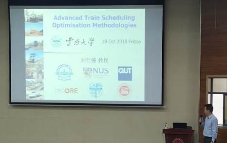 20181019日下午,应李建平教授邀请,福州大学闽江学者特聘教授刘仕强到我院讲学,在格物楼3103报告厅作了题为“Advanced train scheduling optimization methodologies”的学术报告。