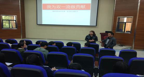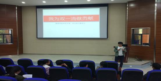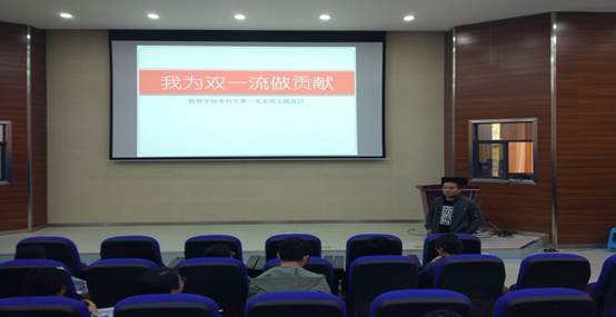 2018年4月27日下午,数统学院本科生第一党支部于格物楼3103报告厅开展了以“我为双一流做贡献”为主题的党日活动。会议活动期间,在党支部副书记彭程同志及教师党员彭玫同志的主持指导下,全体学生党员、预备党员和发展对象认真讨论学习,决心深刻贯彻落实“一流党建”方针,齐心协力为建设双一流大学做贡献。