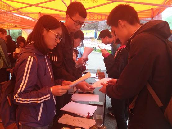 为了丰富学生的学习生活,增强学生对所学知识的运用。4月27日于知味堂门口举办了女生节系列活动之数学知识竞赛活动。同学们积极参与,踊跃答题,拓展了数学方面的知识。