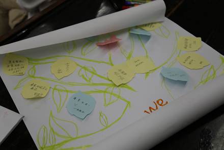 本次体验课进行了三个游戏。首先,杨熙怡老师将参与课程的学生分为3组,并简单介绍了游戏每个环节的规则。第一个游戏是许愿树,每个小组有15分钟的时间,在提供的白纸上画一棵树并贴上自己的愿望。时间结束后,每小组派代表上去展示自己的成果,现场的气氛异常活跃,展示过程也是掌声不断。