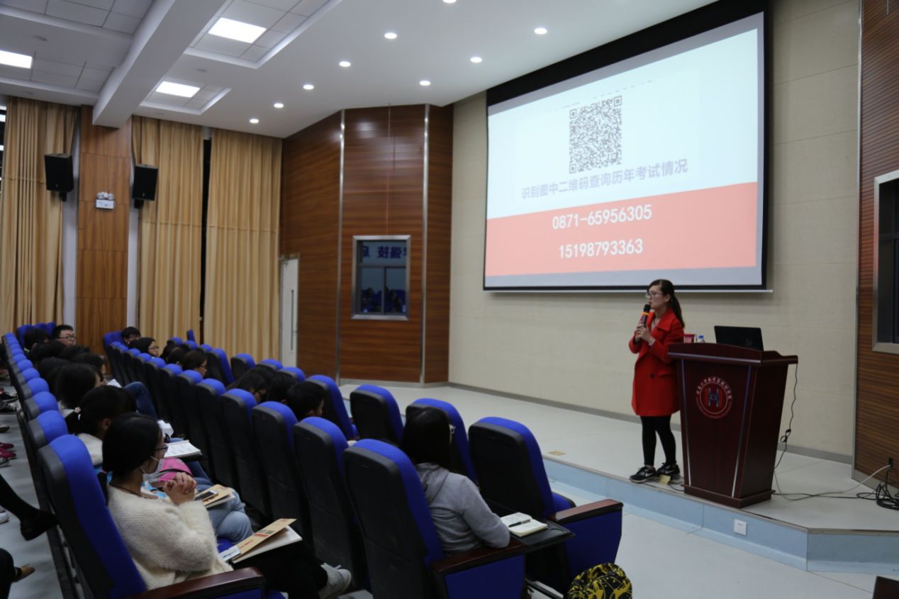 接着同学们在讲解人的带领下简要了解2017年云南省公务员岗位概况及云南联考时间节点,并强调了相关报考注意事项,提醒相关考生注册和专业测试流程等。接下来讲解人展示并现场提问有关公务员考试的题型,与同学们互动交流,现场气氛迅速达到高潮。同学们也都利用手机等移动设备记录并保存。最后,讲座在诸多饱含哲理的段子中结束。
