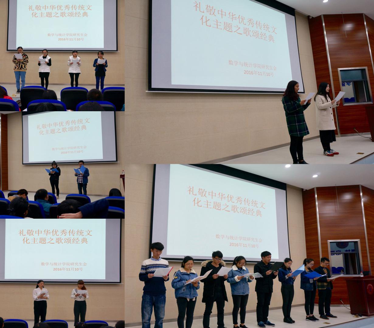 我院研究生会于2016年11月1日—11月18日期间,举办了“礼敬中华优秀传统文化”主题系列活动,包括传统文化展、优秀电影放映、歌颂经典、传统文化主题讲座、文化知识竞赛等活动。