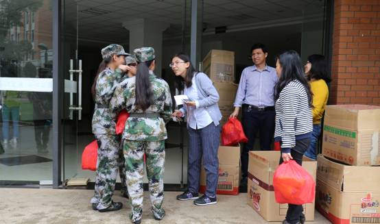 9月7日中午12点,我院在格物楼3栋一楼大厅进行了2016级本科新生军训的慰问活动。我院党委副书记杜芳芳老师, 2016级班主任骆平仙老师、娄本功老师、朱敏老师,2016级辅导员鲁学伟老师参加了此次慰问。