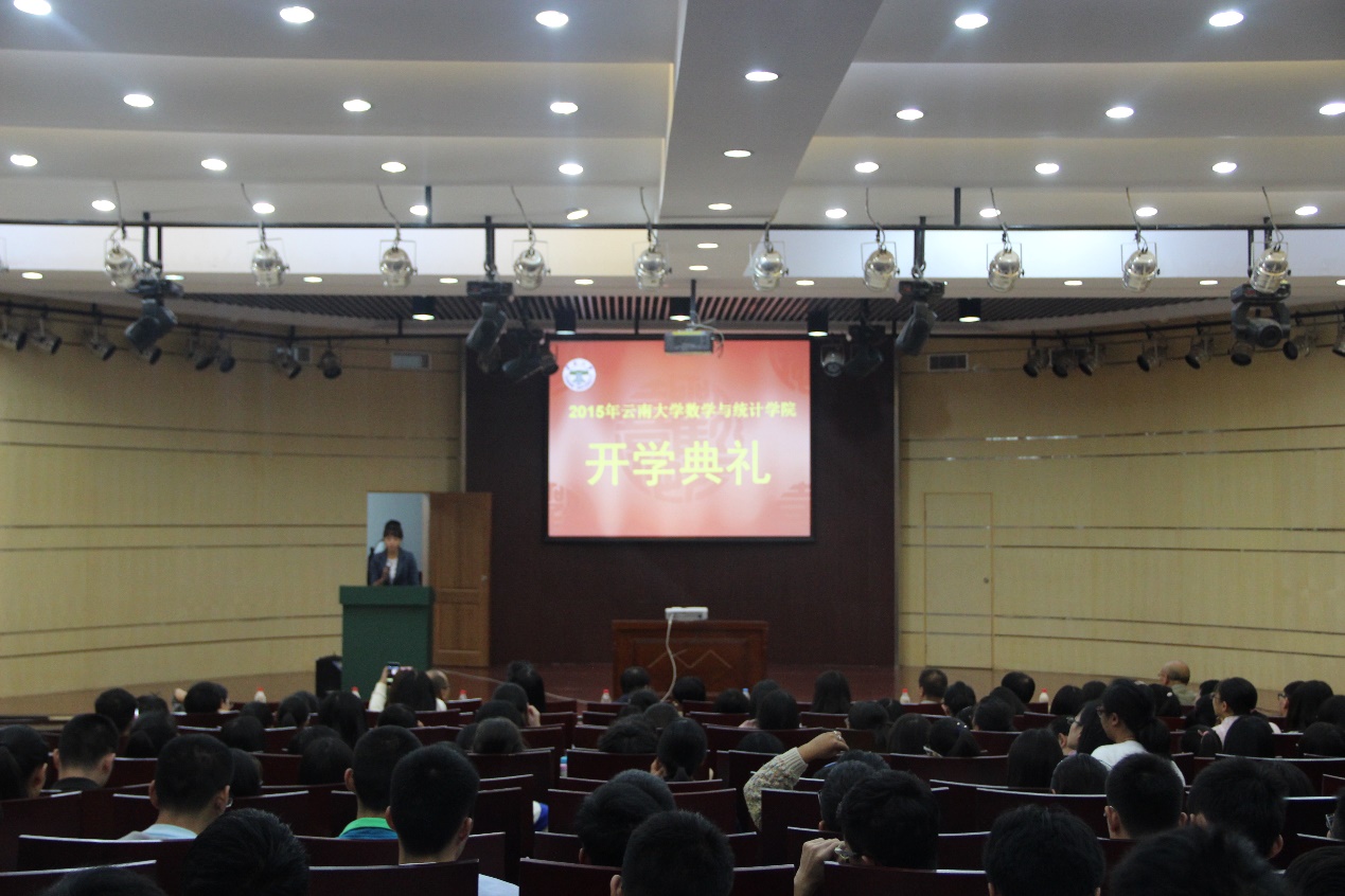 本次典礼由威廉williamhill官网党委副书记杜芳芳担任主持,在表达了对全体同学的祝福与感谢之后,杜芳芳老师宣布此次开学典礼正式开始,全体师生起立奏唱国歌。在气势磅礴的国歌声中,我院各级领导以及老师严肃而认真,充分表现了他们要为祖国培养出新一代人才的决心。而稚气未脱的新生们也表现出了对未来的无限憧憬与向往,同时也表现出了他们要为威廉williamhill官网注入一股新的力量的决心。国歌奏毕,紧接着由党委书记李永昆进行发言。在发言中,李永昆书记提出“人才需要准备,因此我们需要好好规划自己的未来”。这句话表达了李书记对我们2015级新生的殷切希望。希望他们在数统学院这个大家庭中能够严格要求自己,规划好自己的未来,为迎接将来的挑战而不断的充实自己、提高自己、完善自己,四年洗礼之后成为真正的人才。