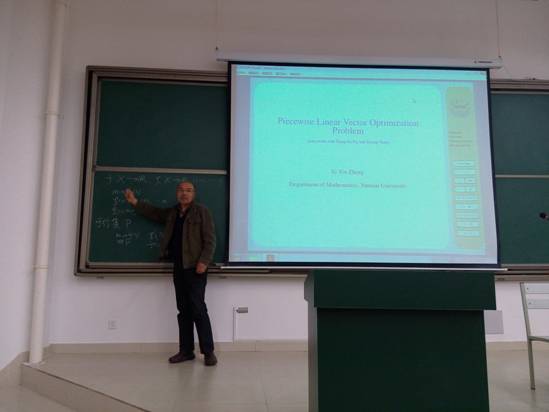 11月3日,我院郑喜印老师在呈贡校区力行楼1303教室为研一学生作了题为“分段线性向量优化问题”的学术报告。此次报告会的参与者是威廉williamhill官网全体研一学生,并由唐安民老师主持。