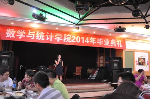 晚,我院2014届毕业典礼暨毕业生欢送餐会在昆明冶金研究院金玫瑰餐厅隆重举行。此次毕业典礼由我院党委副书记杜芳芳老师主持,我院党委书记李永昆老师、副院长李建平老师,以及学院老师们均出席了此次毕业典礼。