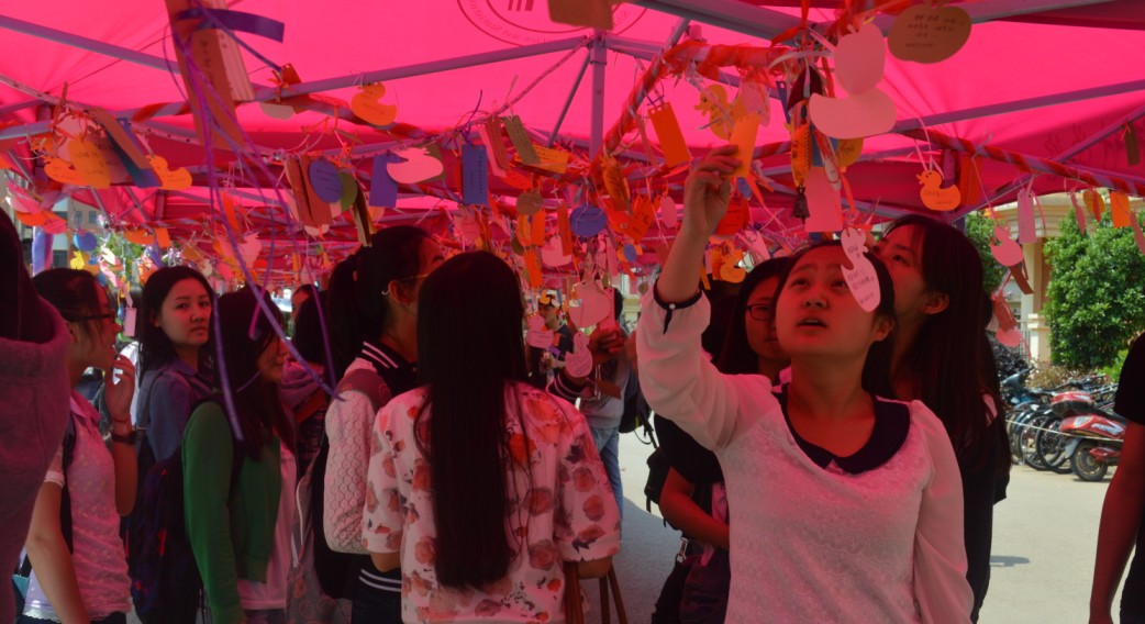 女生节第一天的活动在同学们高涨的热情下告了一个段落,看着许愿长廊里被摘去的小卡片留下的痕迹,大家都想到了今天一定有很多同学实现了自己的心愿,同时也有很多同学在等待着自己的愿望被实现。今天的活动所带来的欣喜将留在每一位云大同学的心中,让我们共同期待明天的活动带给我们更多的惊喜与感动!