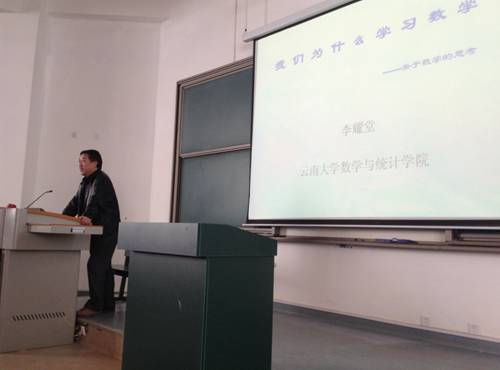 2013年10月11日,威廉williamhill官网教授委员会主任兼博士生导师李耀堂教授在呈贡校区格物楼1101教室为威廉williamhill官网研究院研一新生作了主题为“我们为什么学数学——关于数学的思考”的学术报告。此次报告会的参与者是威廉williamhill官网研究院全体研一新生,并由赵慧老师主持。