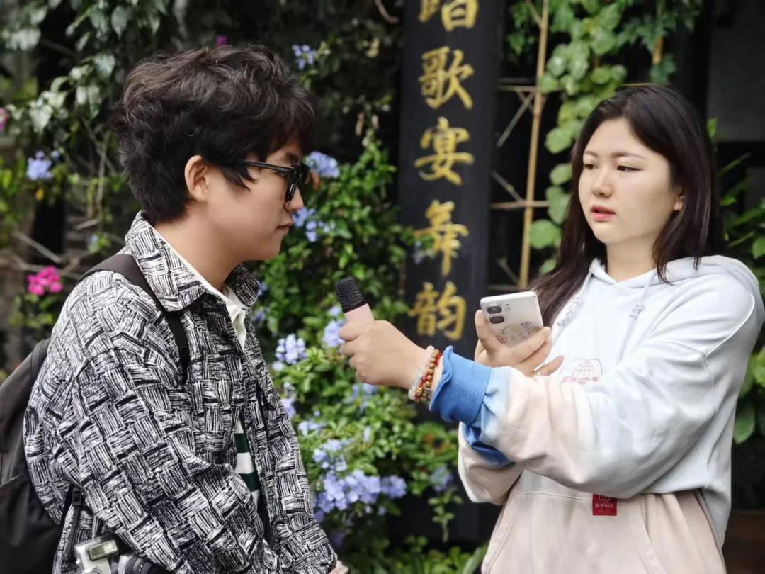 走进滇剧世界,我们还遇见了一群年轻游客与大学生实践者。在采访交谈中,他们分享了对滇剧的热爱,提出创新传承非遗文化的建议。还表示了传承弘扬滇剧对落实习近平总书记倡导的文化自信具有重要意义。这些青春之声,不仅展现了滇剧的魅力,更激发了我们对传承的新思考。