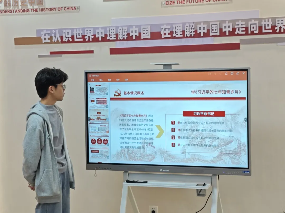 陈叶萱小组结合党的二十届三中全会精神分享了自己阅读《习近平的七年知青岁月》和《共产党宣言》的感触,并讲述了“作为新时代的青年人,我们应该发挥自己的智慧和力量,为国家的繁荣富强贡献自己的青春和热血;应该深入基层,了解国家的实际情况,通过实践增长才干,为国家的建设和发展提供有力的支持;应该在困难和挑战中锻炼自己,培养坚韧不拔的意志和品质,为实现个人的梦想和国家的目标而不懈努力;应该通过投身于国家的发展事业,在奉献中收获成长和进步,实现个人价值与社会价值的统一”。
