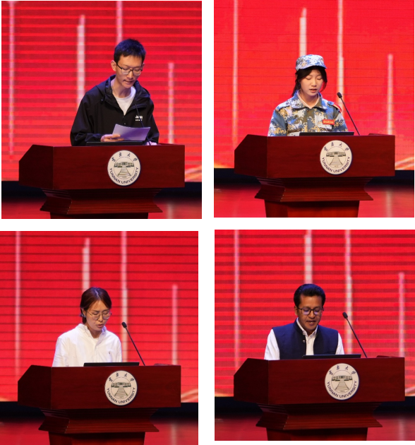 随后,本科生老生代表2022级熊庆来拔尖班姚泽同学,本科生新生代表2025级数据科学与大数据技术专业周欣怡同学、研究生新生代表2025级应用统计专业王华英同学,留学生代表先后发言,分享入学感悟与未来规划,表达了对大学生活的憧憬与立志成才的决心。他们的话语里既有对未来的憧憬,也有扎根当下的力量,这正诠释了大家最好的青春模样。