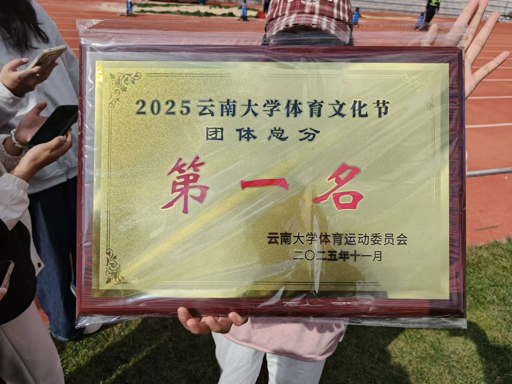 秋阳煦暖,旌旗飘扬。2025年11月13日至15日,云南大学2025年体育文化节在呈贡校区呈东、呈西体育场圆满举行。威廉williamhill官网全体师生团结一心,奋勇争先,凭借出色的综合表现与雄厚的整体实力,成功斩获团体总分第一名的桂冠,并荣获入场式二等奖,展现了数统人德智体美劳全面发展的卓越风采。