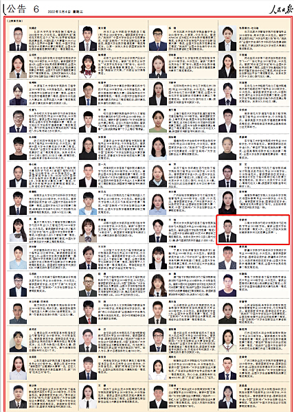 新时代是追梦者的时代,也是广大青少年成就梦想的时代。2022年5月4日,《人民日报》用四个整版刊登了100名本专科生国家奖学金获奖学生优秀代表和100名中等职业教育国家奖学金获奖学生优秀代表名录,我院2018级本科生李家欢位列其中。