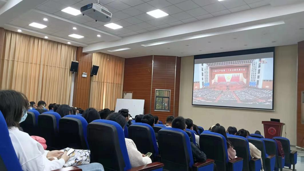 2022年10月16日上午10:00,中国共产党第二十次全国代表大会在北京人民大会堂开幕。我院组织全体师生以多种方式同步收听收看,其中部分青年教师、学生代表在格物楼3103报告厅集中观看。我院辅导员鲁学伟老师、侯廷明老师、罗敬老师参加了本次集中收看活动。