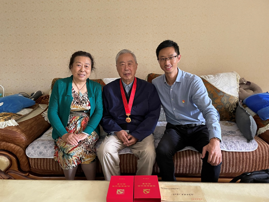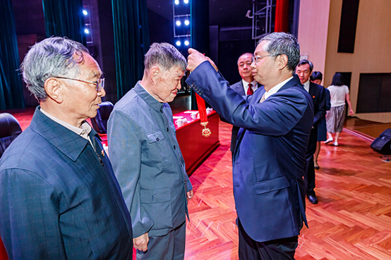 我院退休教师王学仁(原云南大学校长)接受云南大学党委书记林文勋同志颁发“光荣在党50年”纪念章