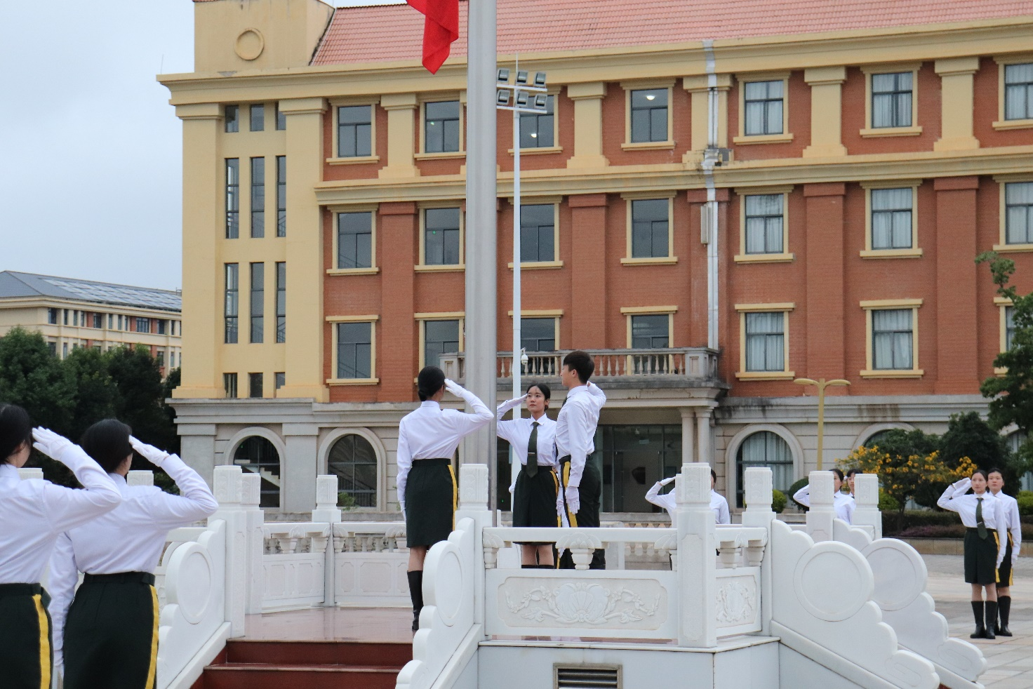随着《义勇军进行曲》奏响,五星红旗缓缓而升,那一抹飘红,是同学们心中的信仰,也是祖国繁荣昌盛的象征。虽然顶着初入深秋的寒风,但看见冉冉上升在云大校园的那抹中国红,同学们的赤子之心也随之燃烧。广场上的红旗高高飘扬,同学们心里的国旗也是如此。