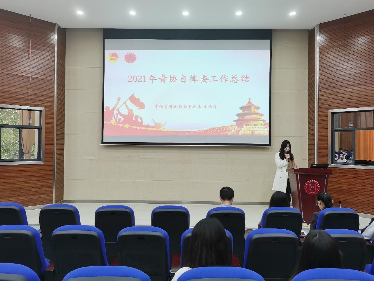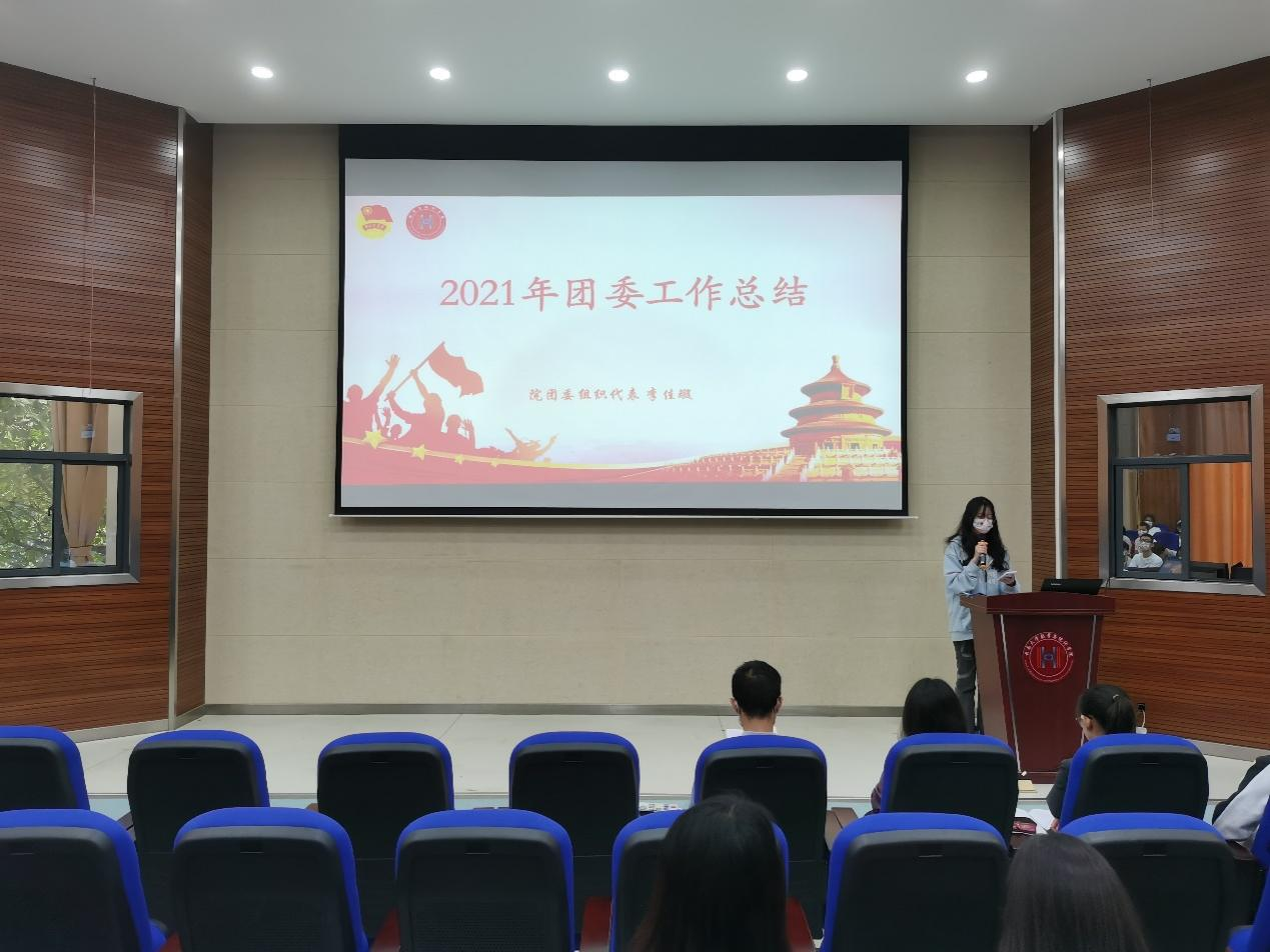 会议在嘹亮的国歌声中拉开帷幕。在过去一年中,我院团委圆满完成了各项工作,取得了优异的成绩。王蔓琦老师首先就我院2021年的团学工作进行总结发言;接着院团委组织代表李佳璇、学生会代表李诗琦、研究生会代表王晓盛、青协自律委联合会代表王雨洁、新闻宣传中心代表陈叶萱同学,对各学生组织2021年学生工作进行总结;五四红旗团支部支书宋佳恒同学,优秀毕业生代表李家欢同学进行发言。