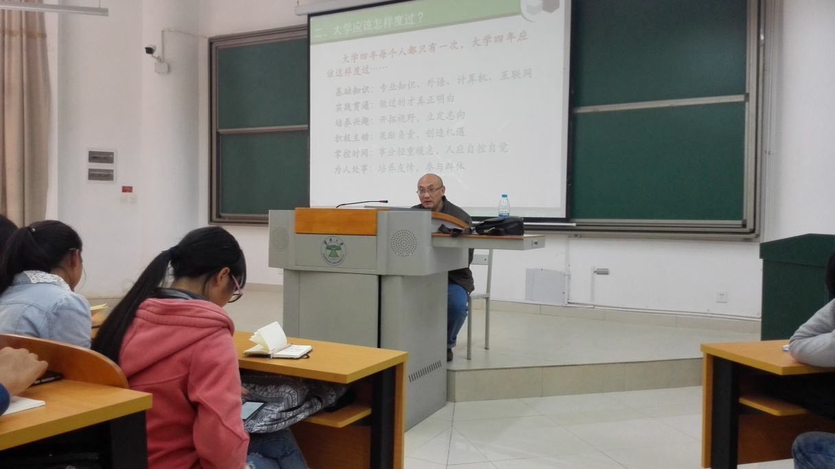 10月14日下午4点,我院在力行楼1201举行了“大学生活当怎样度过”的讲座与交流活动,由副院长谭建国主持,辅导员项首先和我院2015级全体学生参加了此次讲座与交流活动。