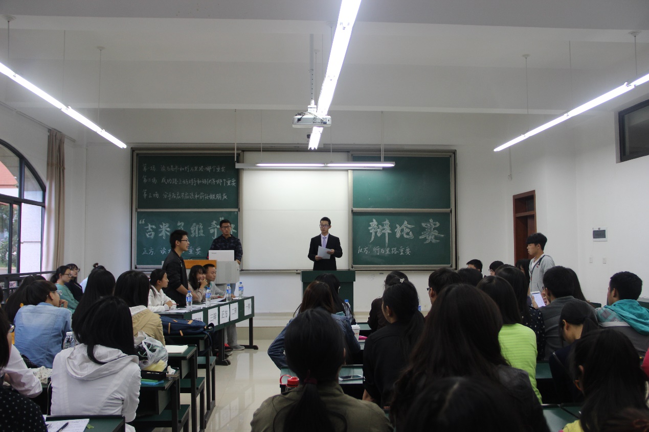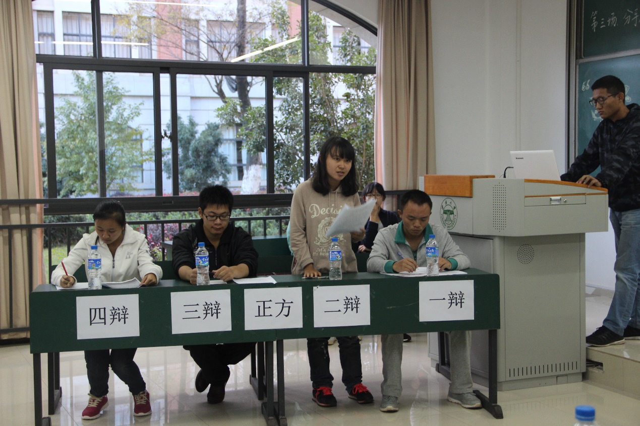 之后,由统计学队员组成的正方与信息与计算机科学队员组成的反方就“成功路上好队友和好对手哪个重要”进行辩论。当双方论述完毕,团委副书记张世滨,学生会副主席冯雨思,辩论队副队长罗菁莹,辩论队队长陈美玉先后点评了参赛队员的表现,并点明答辩时语速,气势,时间把握的重要性。其中,辩论队队长陈美玉特别对自由辩论环节的规则进行了强调。