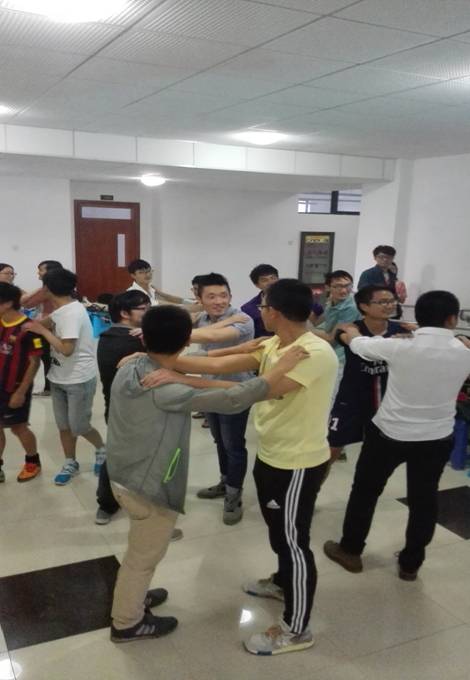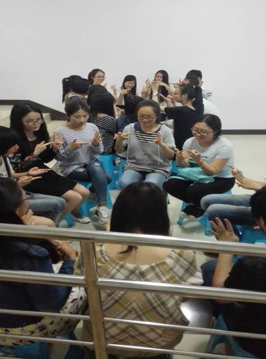 紧接着,王老师、姚老师、刘老师带领同学们做第二个游戏——枪打四鸟,同学们在组长的带领下在小组里积极参与这个游戏,用比赛的方法选出自己小组中反映最好,游戏出错率最低,做的最好的成员在大家面前进行比赛。比赛开始,由于第二组的代表紧张等各个反面的原因被淘汰了,但是剩下来的五名同学都能准确无误的做出来。针对这个游戏,王老师让同学们在小组里进行讨论游戏做得好或者不好的原因以及评估自己可以开始竞赛的方法,同学们积极参加讨论,踊跃发言,比赛同学也通过成功失败的经历发表自己的见解。总而言之就是取得比赛成功不仅要有自己的天赋和平和的心态,还要有多加练习,勤能补拙。