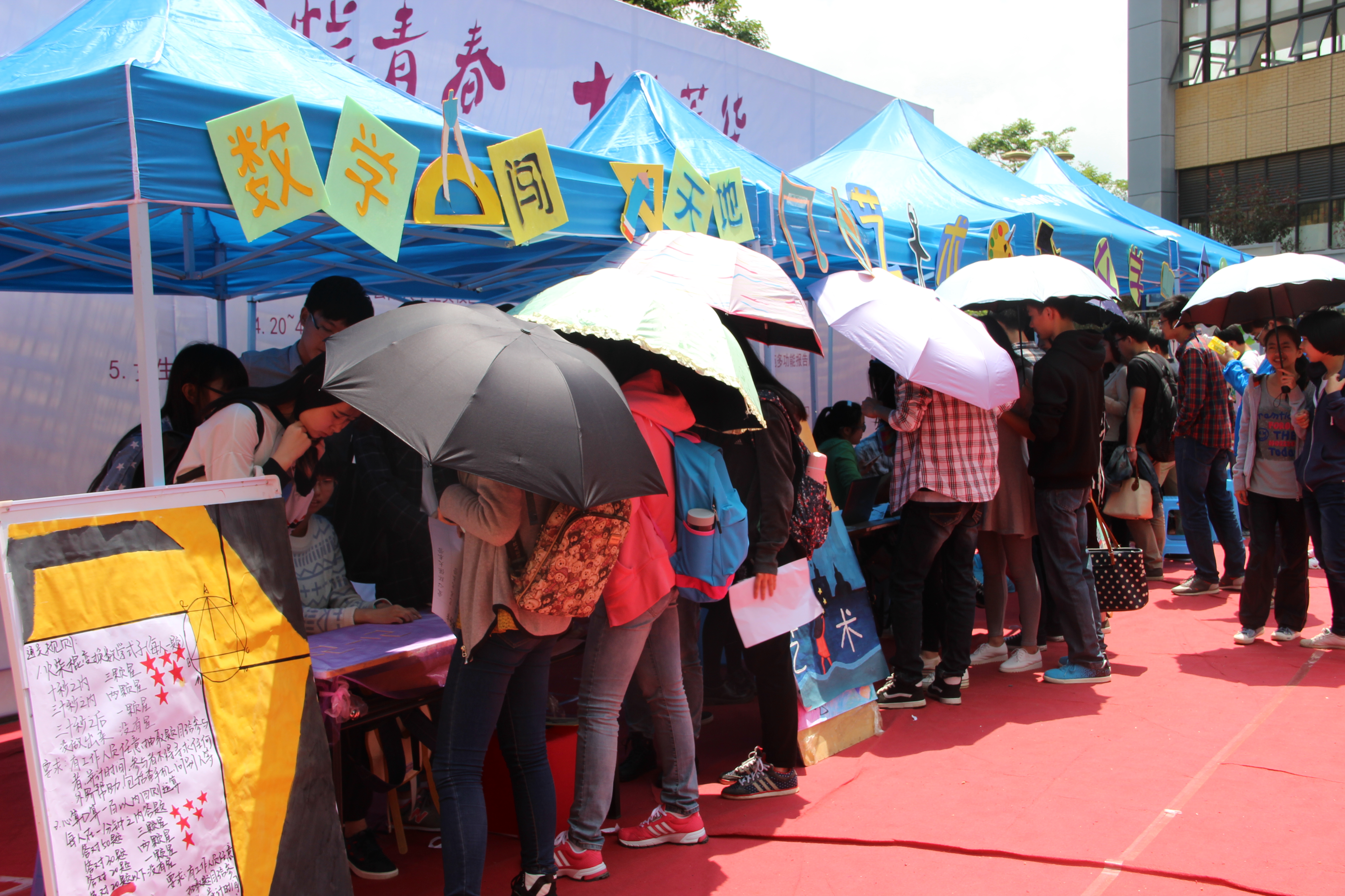 4月24日中午,我院在楠苑食堂门口举行了2015年云南大学第十届女生节系列活动——“数学大问答”,此次活动参与的人数非常多,现场十分的热闹。