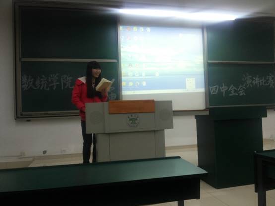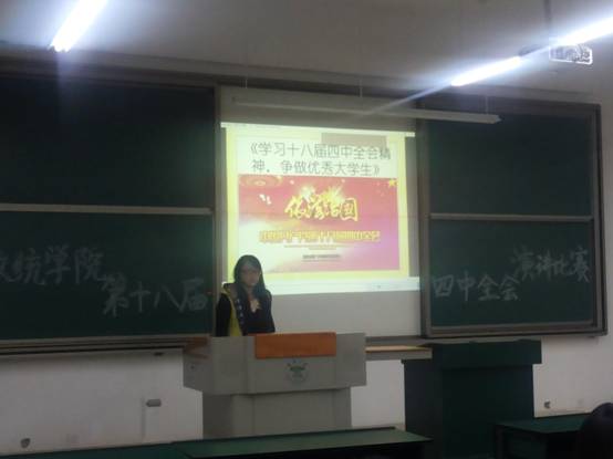 11月22日晚上7点,为庆祝党的第十八届四中全会在北京胜利召开,威廉williamhill官网的同学在格物楼1105开展了一场关于学习贯彻第十八届四中全会精神的演讲比赛。