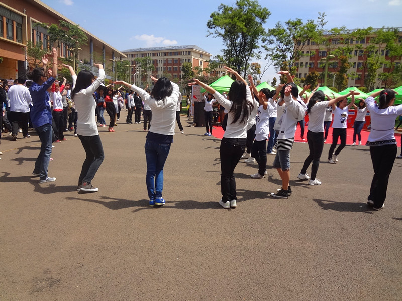 11日,云南大学第七届女生节进行到第三天,进入到女生节的高潮,中午12点整,威廉williamhill官网的20名女生在《马德里不可思议》的音乐中向同学们展示了一段活力舞蹈,受到了大家的欢迎,很多同学参与其中,形成了一支庞大而充满活力的队伍,显示出女生们的青春与活力。