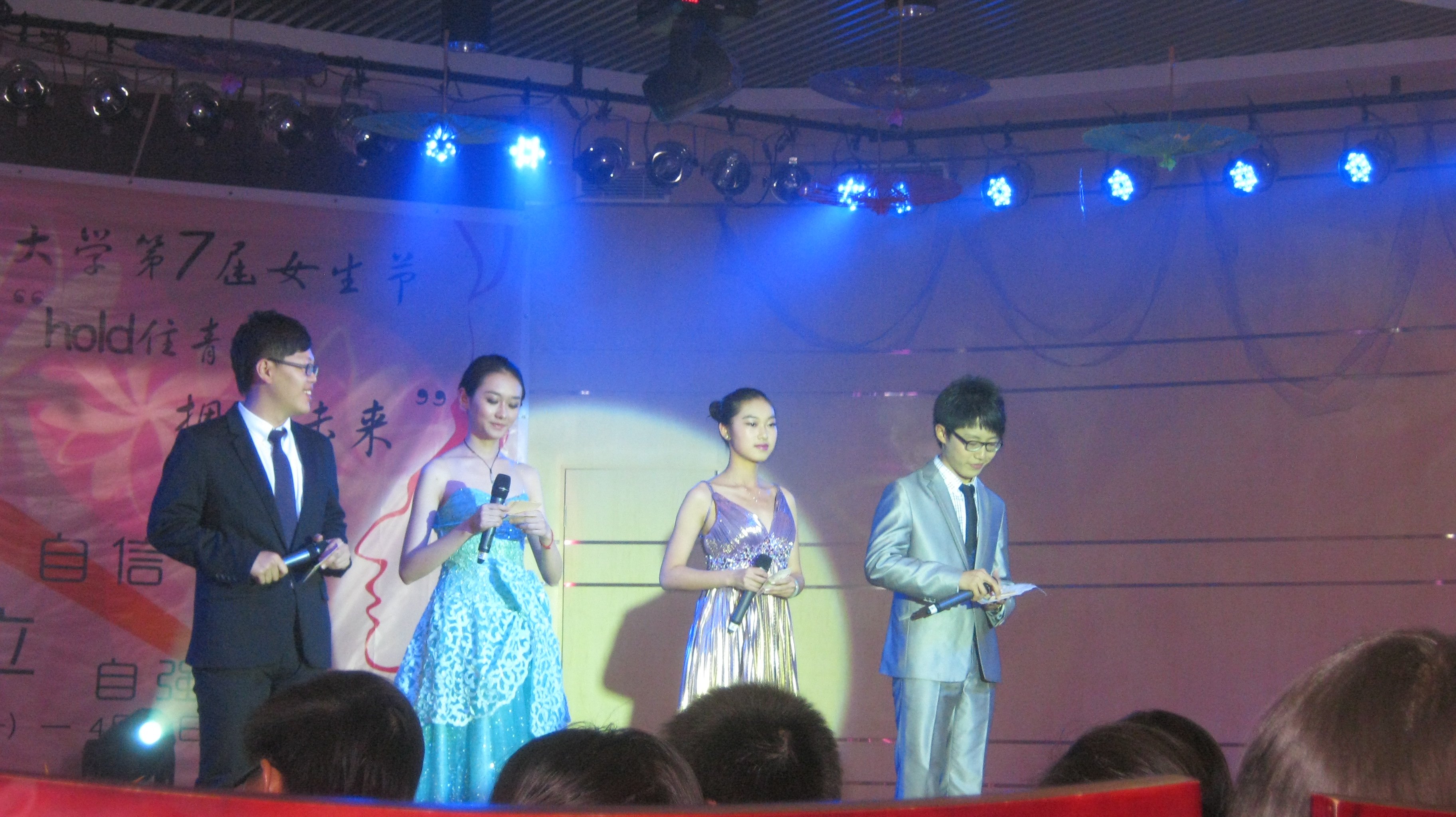 10日晚7点半,“HOLD住青春,拥抱未来”开幕晚会紧随展开,晚会掀起一个又一个高潮,在青春活力的表演之后,云南大学副校长刘晓江宣布云南大学第七届女生节正式开幕,并预祝此次女生节圆满成功。