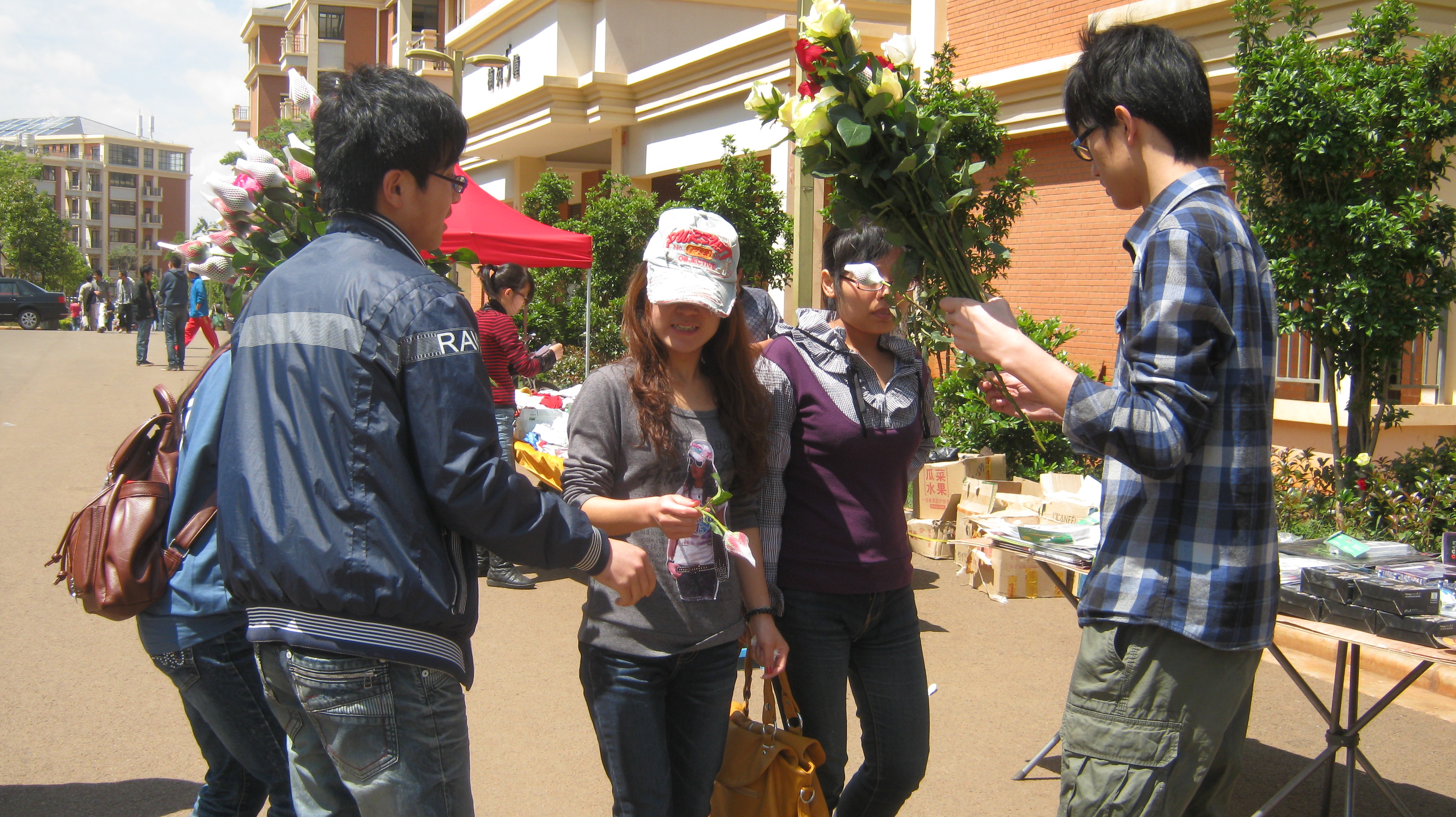 4月9日上午,云南大学女生节系列活动之“HOLD住青春,春色祝福”在各个园区展开,我院男生给老师们和女生们送上玫瑰和贺卡,同时也献上节日的祝福。