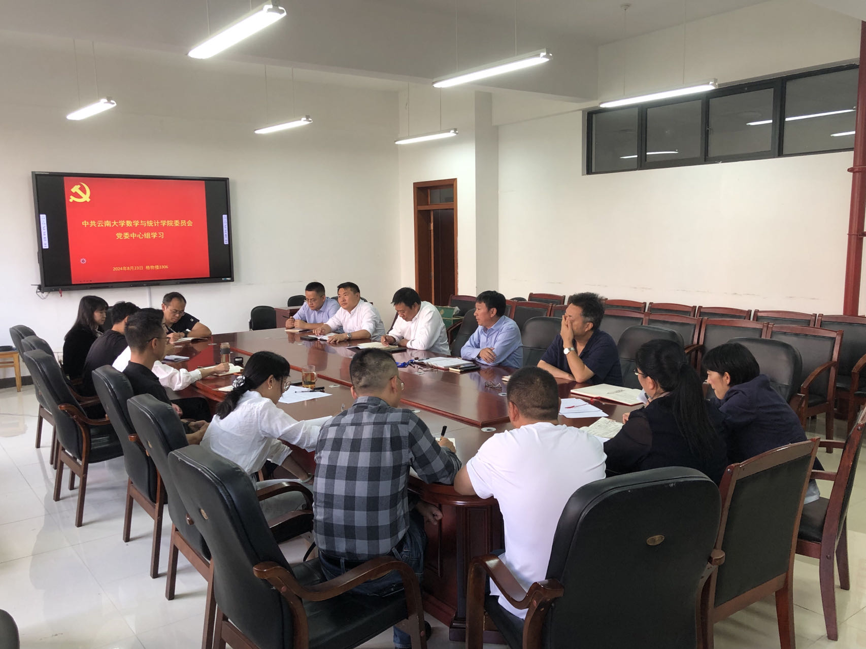 2024年8月23日上午,学院召开党委理论中心组学习,学习贯彻党的二十届三中全会精神。全体党委委员,数学系主任李朝迁、全体党支部书记、中国民主建国会云南省分会会员吕君列席会议,会议由学院党委书记徐瑾主持。