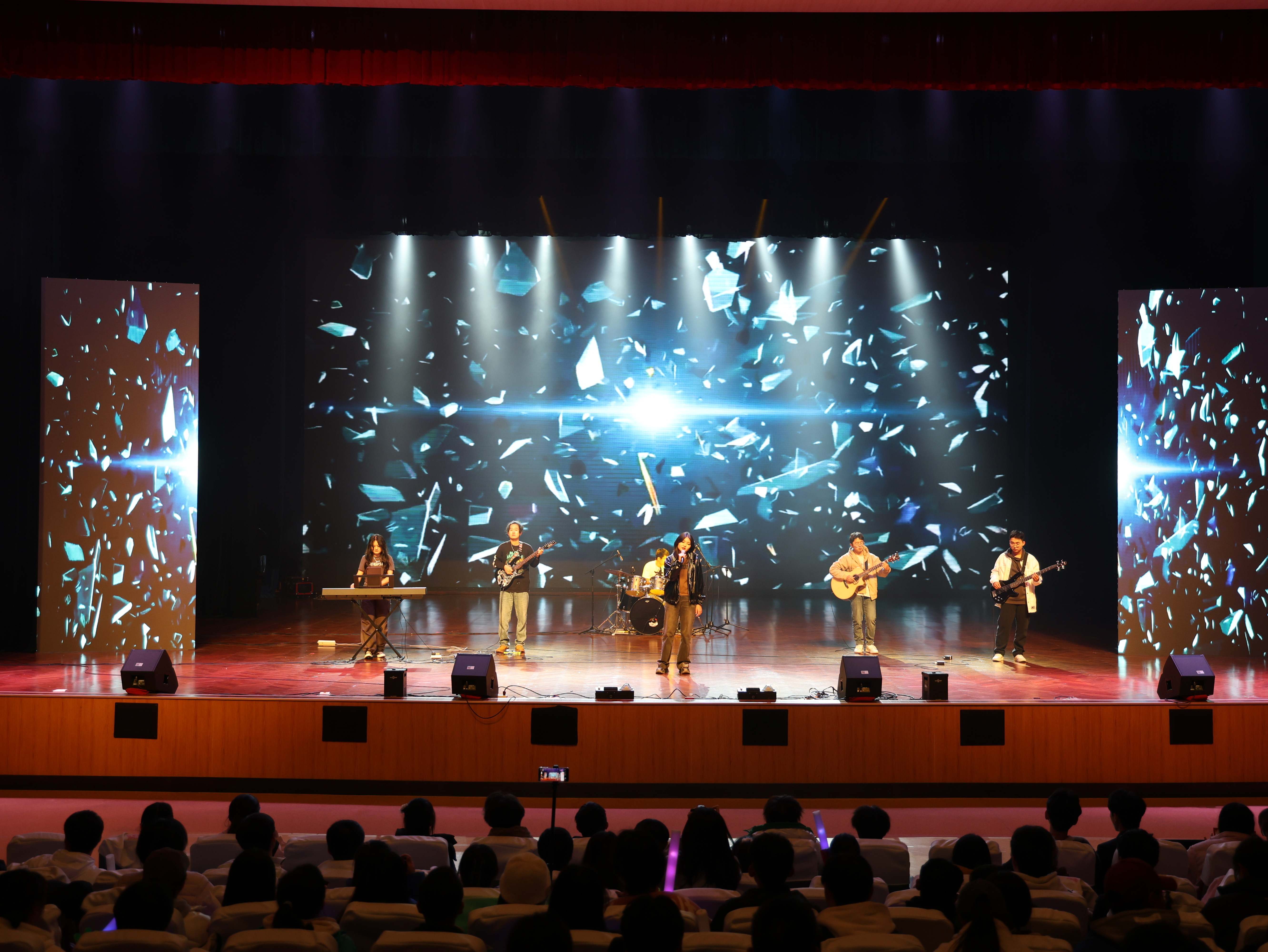 欢快的节奏,激昂的鼓点,吉他的旋律在空中绽放,文艺部乐队带来的《梦幻与现实》充满活力,带动着全场的气氛,迎新晚会拉开了序章。街舞社带来的《spark and sync》点燃舞台,舞者们如灵动火焰,以酷炫舞姿释放无尽激情,跳出了非凡魅力,展现了数统学院学子的活力与激情!