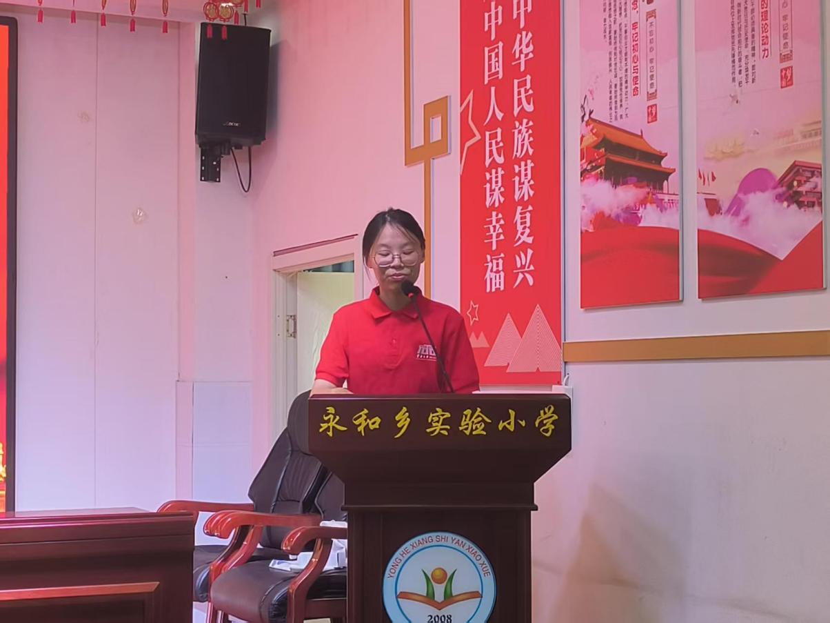 此次宣讲活动的主持人张雅兰,作为永和乡实验小学2015届的杰出学子,始终铭记母校的培育之恩。她带着深厚的感恩之情与满腔热忱,回到这片熟悉且温暖的土地。她深知红色文化对孩子们成长的重要性,期望用一场触动心灵的红色文化盛宴,在学弟学妹们心中种下红色的种子,为他们的未来指引方向。