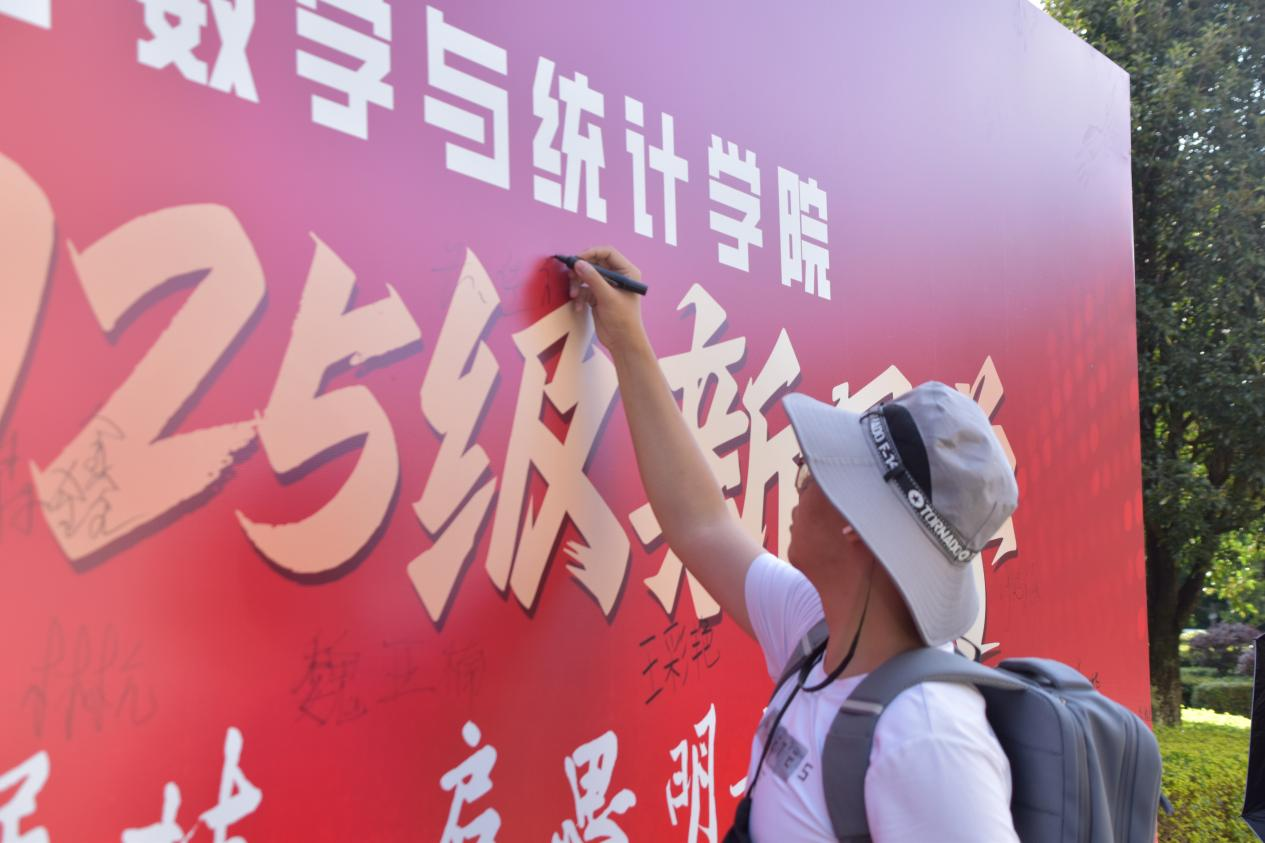 随着学长学姐一路的指引终于来到心心念念的学院楼。新生们在学院前的迎新展板前打卡并签下自己姓名,“咔嚓”一声相机定格下今日阳光中懵懂憧憬未来的逐梦学子,待到明日小树成才,带着赤子之心与专业之志奔赴更辽阔的地方,把青春的答卷写在祖国需要的地方。