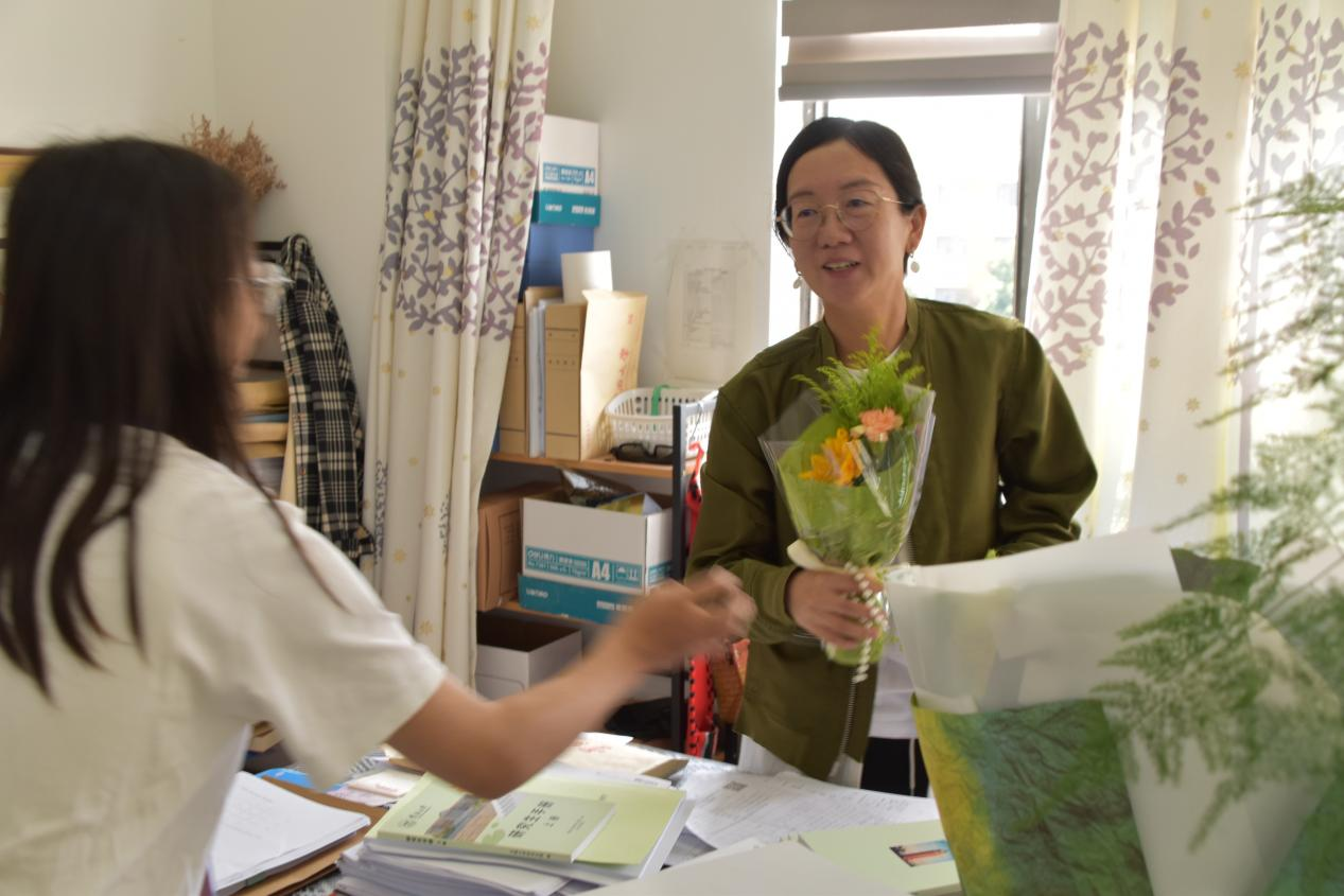 9月10日教师节当天,学院楼里满是青春身影——由学院工会主办、院学生会和新媒体宣传中心协办的“感念师恩”鲜花送祝福活动正式开启。