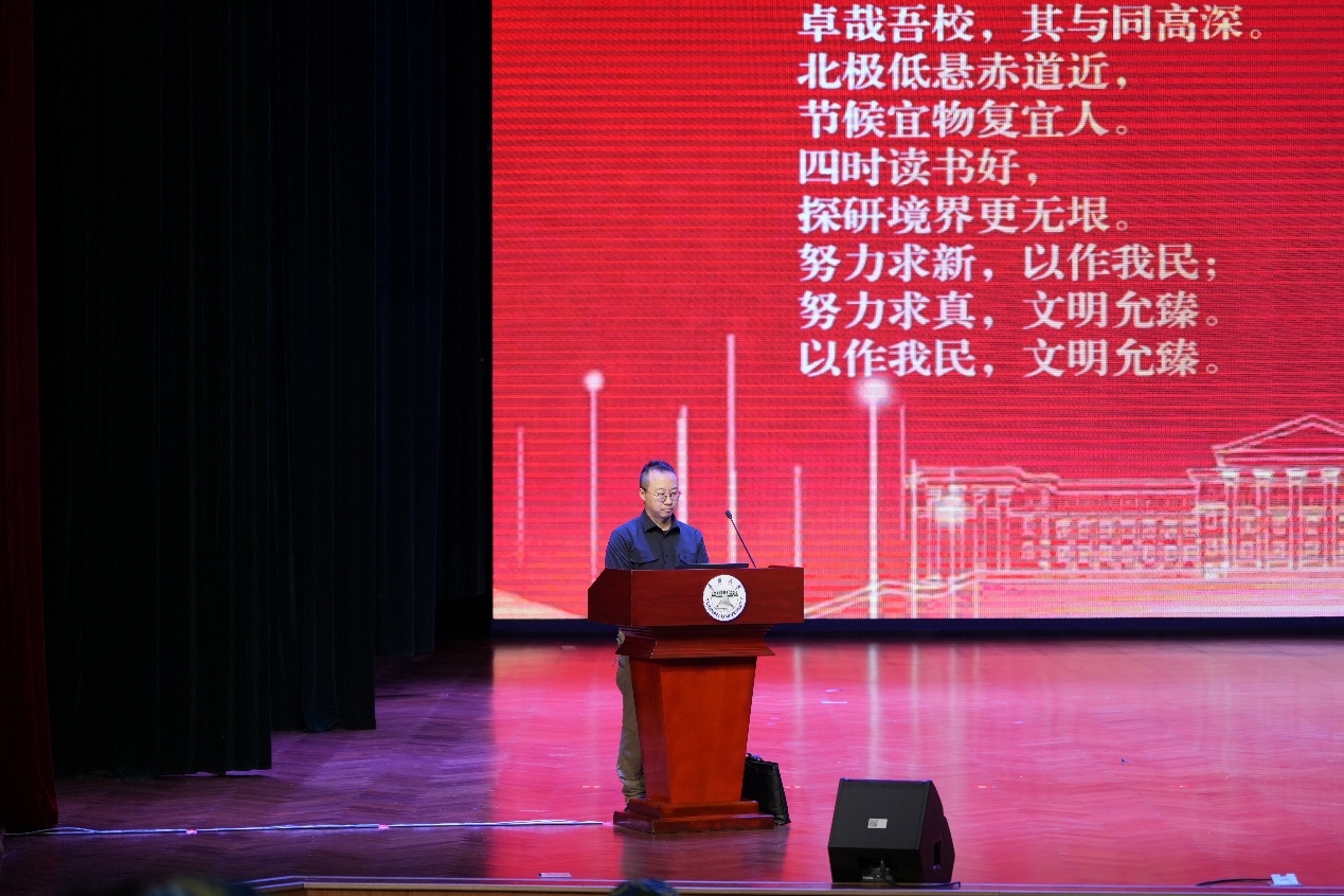 2025级开学典礼在庄严的国歌声中拉开帷幕,全体师生起立,齐声高唱中华人民共和国国歌,激昂的旋律回荡在会堂之中。